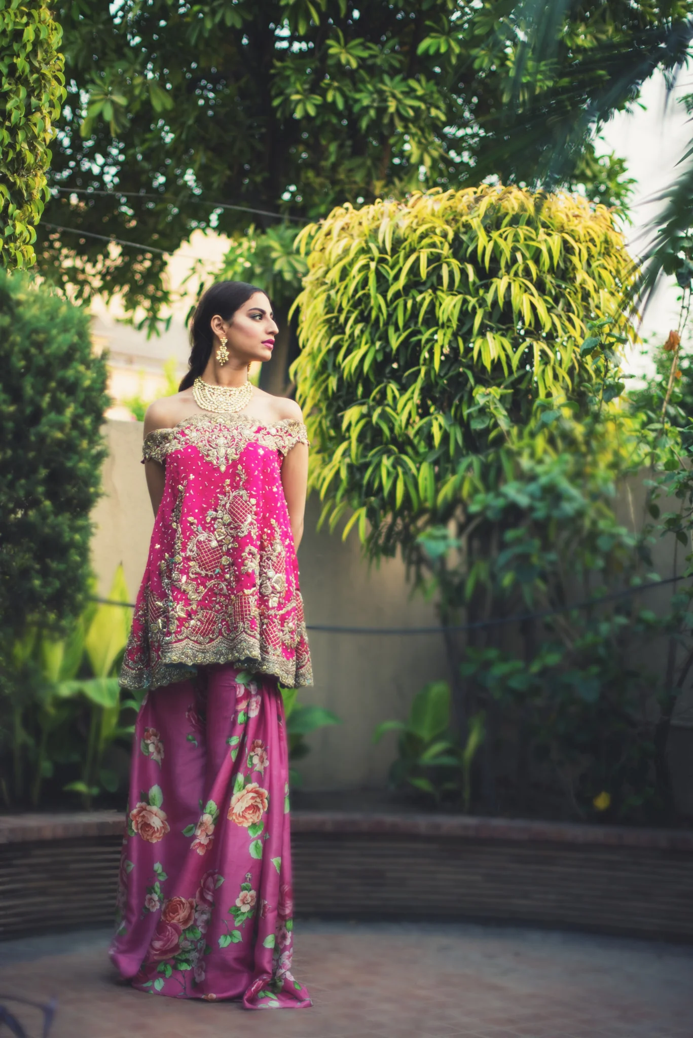 - RAW SILK PINK TOP WITH SILK FLARED SHARARA