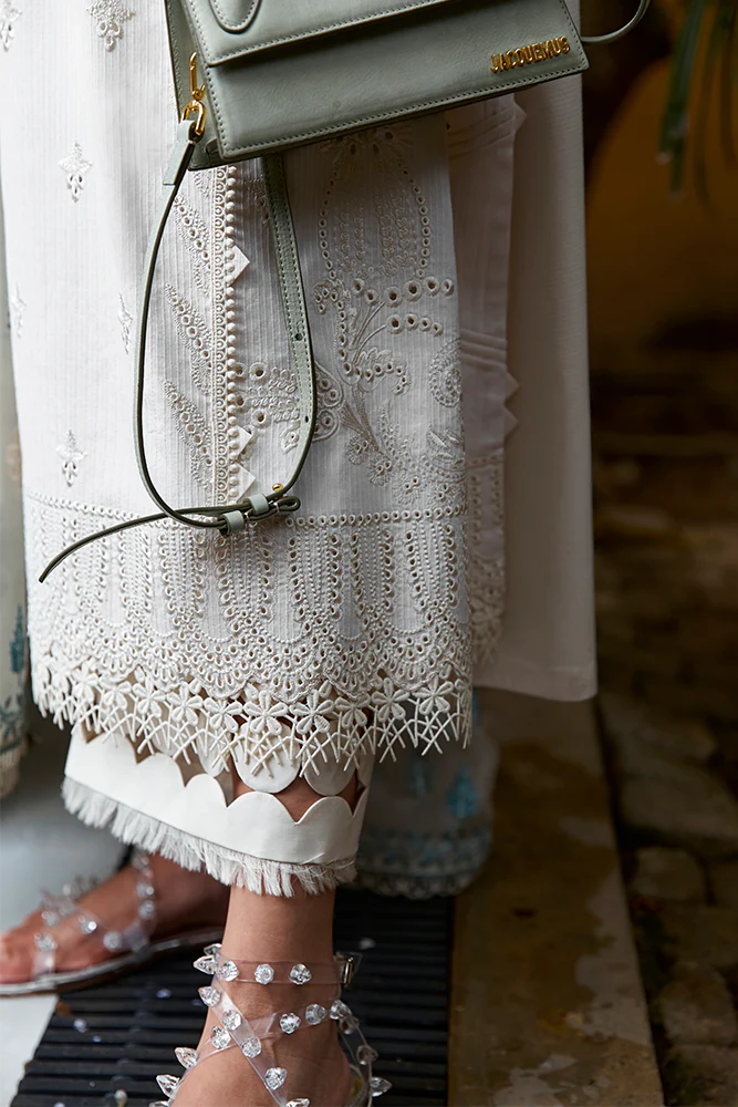 - OFFWHITE KURTA WITH BORRING EMBROIDERY AND LACE FINISHES.
