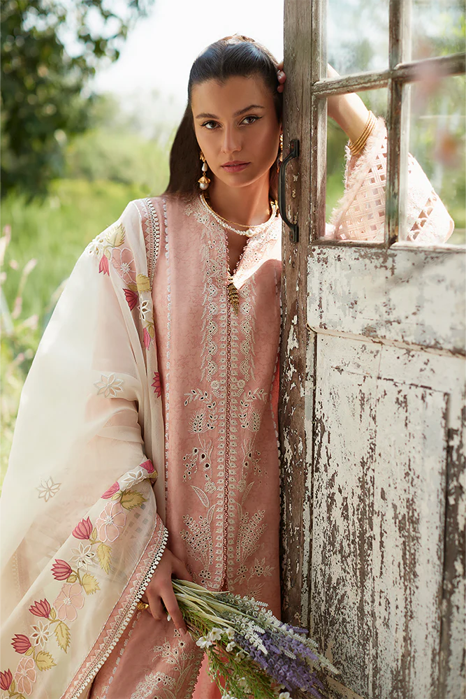 - LASER CUT DUPATTA WITH EMBROIDERY AND LACE ALL AROUND.