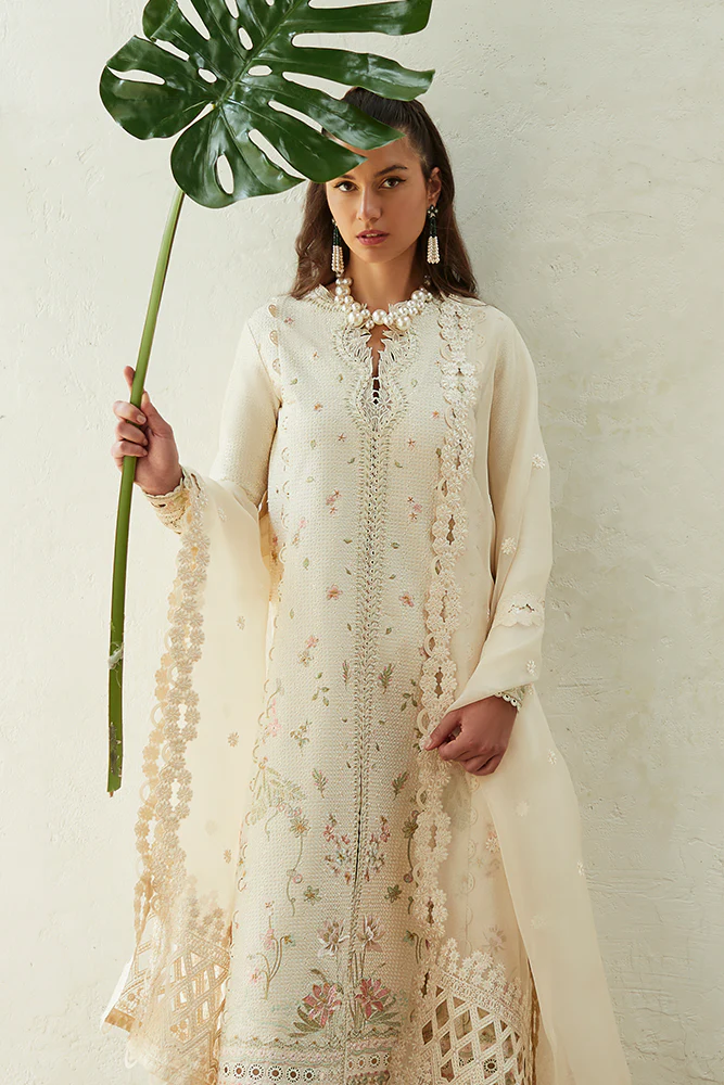 - CHICKEN KARI KALIDAR SHIRT WITH HEAVY EMBROIDERY AND LACE FINISHES.